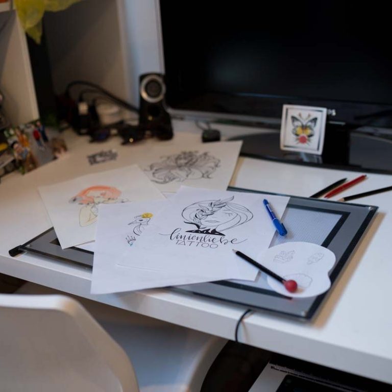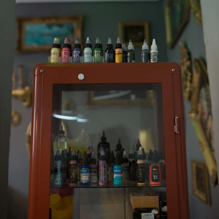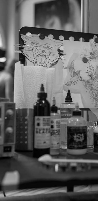 Seit 2011 bin ich Tätowierer und lebe diesen Beruf. Das heißt für mich natürlich auch stetige Entwicklung, die Suche nach neuen Inspirationen und Techniken. Weiterentwicklung statt Stillstand. Stilistisch bin ich sehr breit aufgestellt und versuche jeden Kundenwunsch gerecht zu werden. Abstrakt, realistisch, bunt, minimalistisch oder schwarz, ich mag die Herausforderung und bin gerne jeden Tag aufs Neue gefordert. Was ich immer wieder gerne mache sind Tierportraits und Geometrie. Mein Studio unterscheidet sich sich von anderen, weil es besonders ist, mit Hang zu verspielten Details, mit Liebe zu Antiquitäten, gemütlich, eben so, dass es zum Verweilen anregt, nicht zur bloßen Abfertigung.